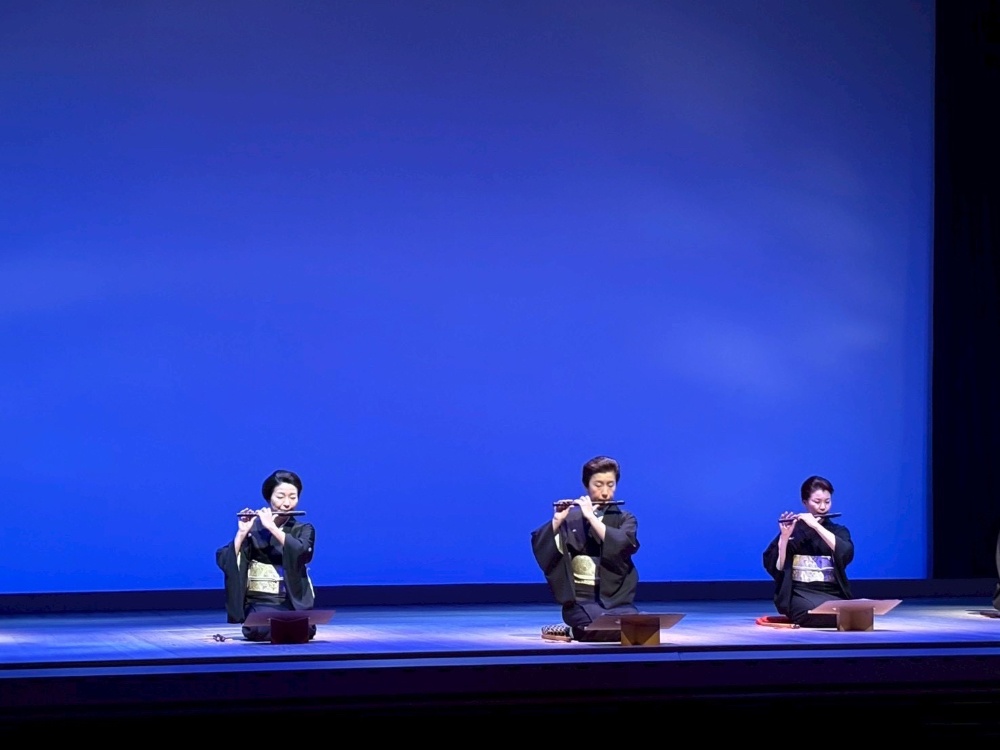 三味線の旋律に合わせて篠笛を吹いてみましょう。