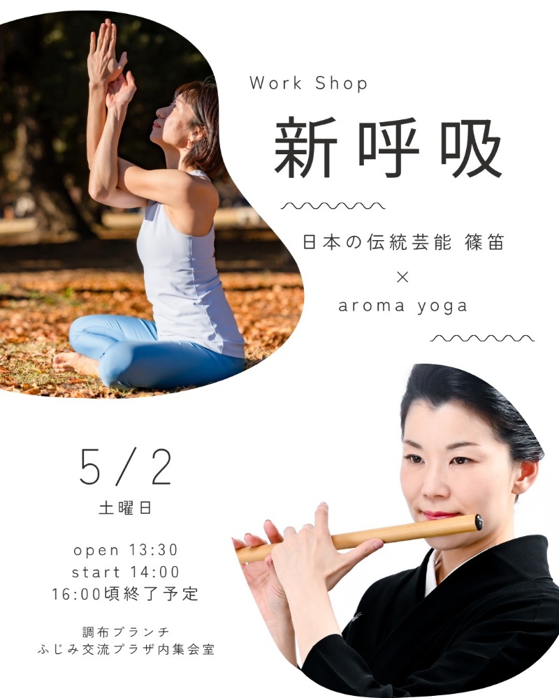 5/2yogaと篠笛5/9お囃子ライブ Vol.21in 三鷹六瓢庵5/16神楽坂まち舞台
