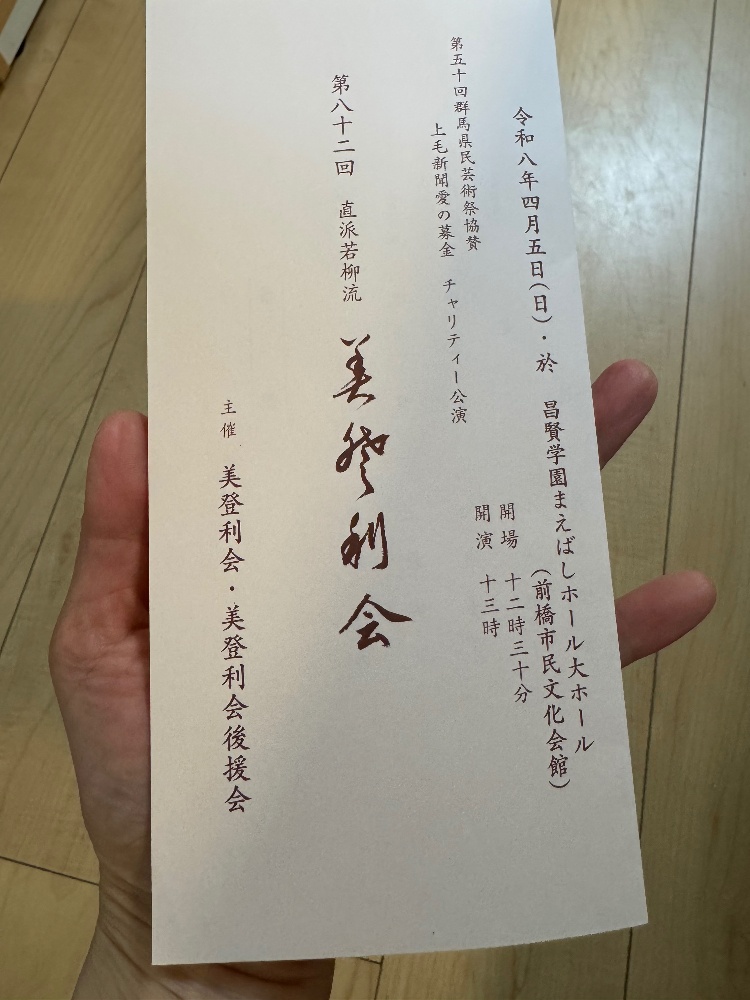 さて、来月5日に群馬にて踊りの会の地方に出演します。